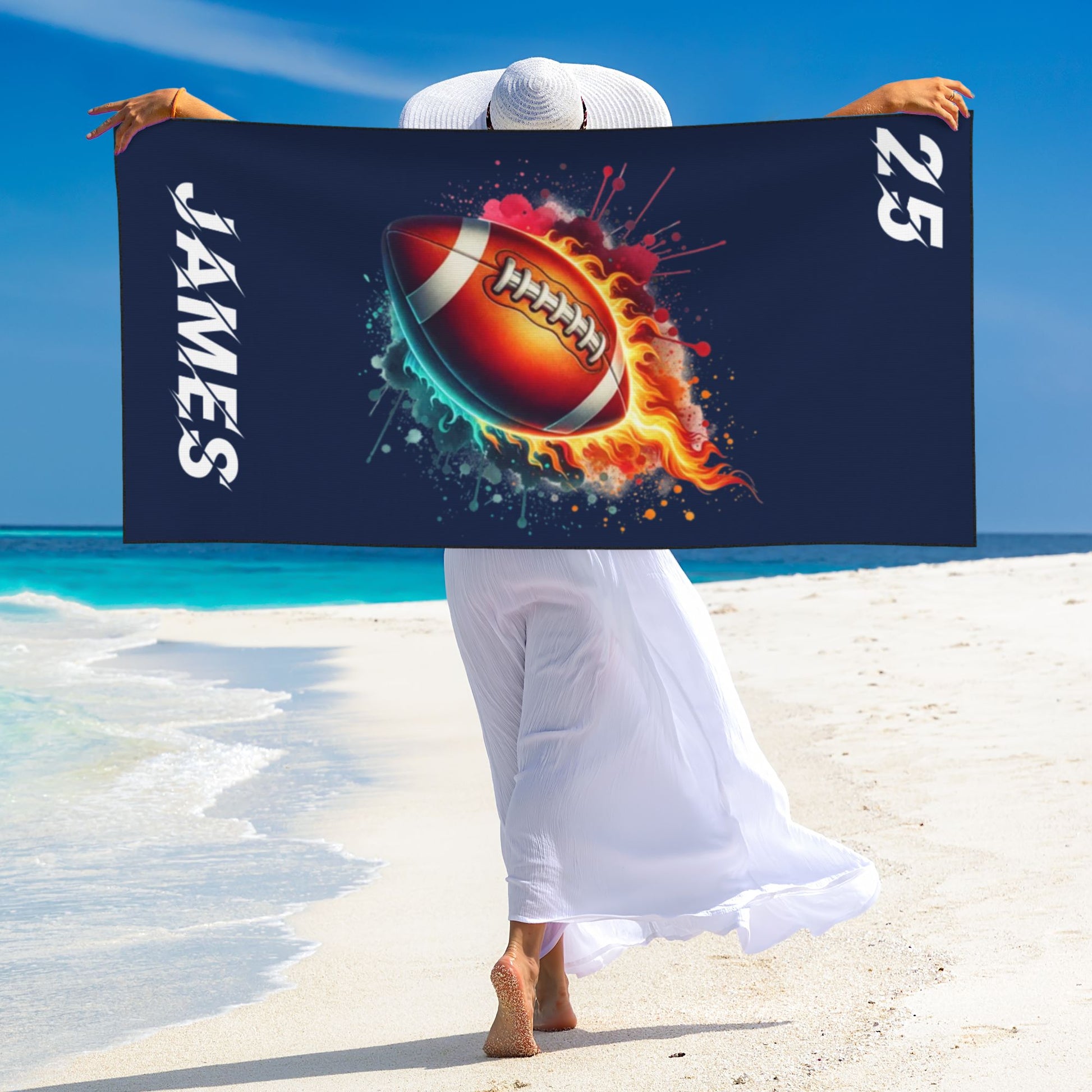 · This premium peach skin beach towel is perfect for sports enthusiasts and athletes who love football, basketball, tennis and other ball sports, serving as both practical gear and personalized memorabilia with custom name/number options. · It's an essential vacation companion for beach resorts, poolside lounging, camping trips and outdoor festivals. The towel makes a thoughtful gift for birthdays and housewarmings, and serves as a versatile travel essential for gym sessions, cruises or as a stylish cover-up. · Its quick-dry technology and durable construction cater to both summer beach adventures and year-round sporting activities, offering the perfect blend of functionality and personalization for every occasion. |