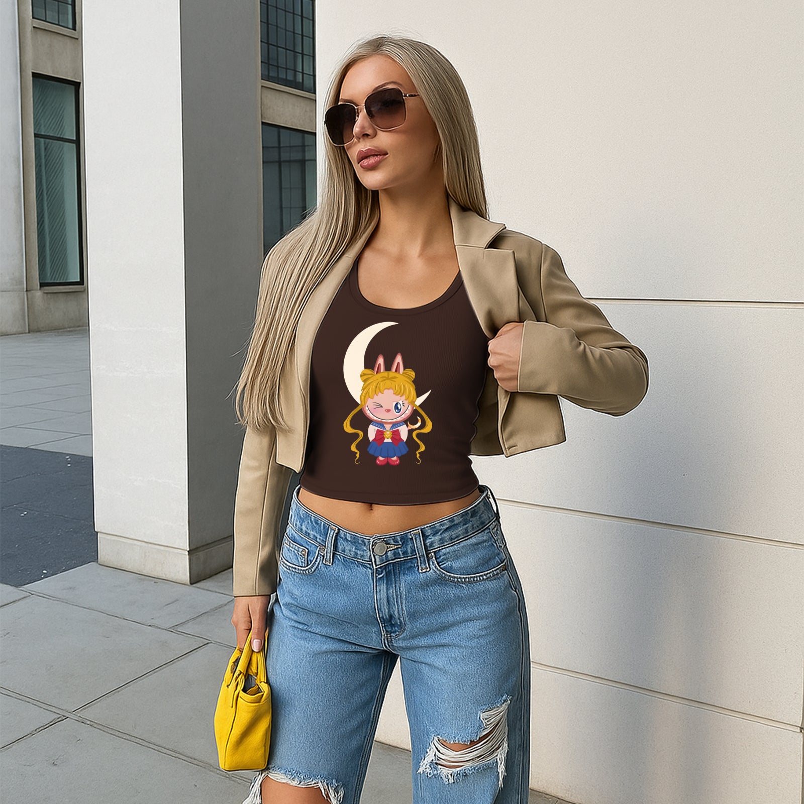 Sailor Moon The Monsters Women's Sleeveless Scoop Neck Ribbed Tank Summer Basic Slim Cute Tops For Labubu Lover